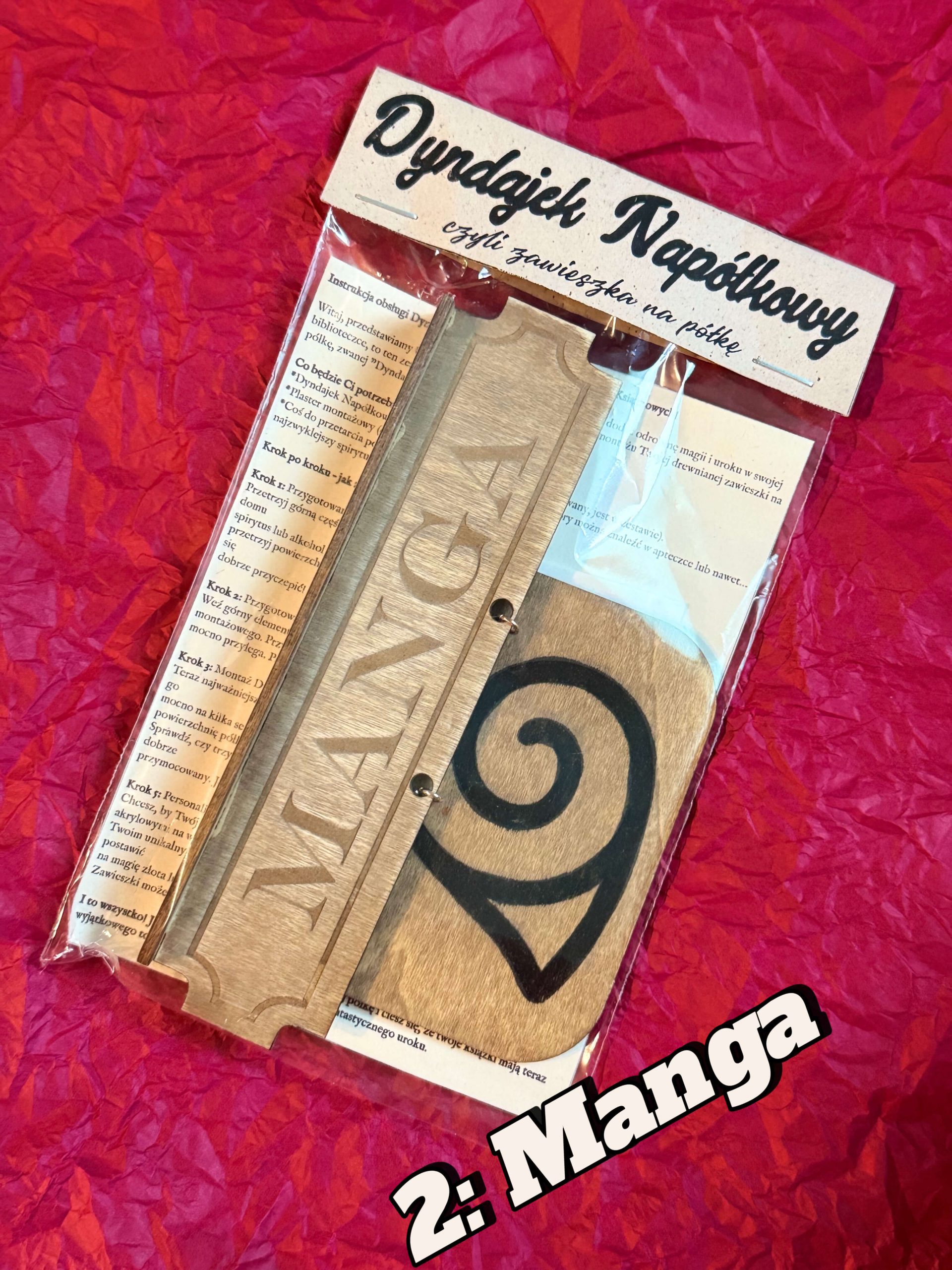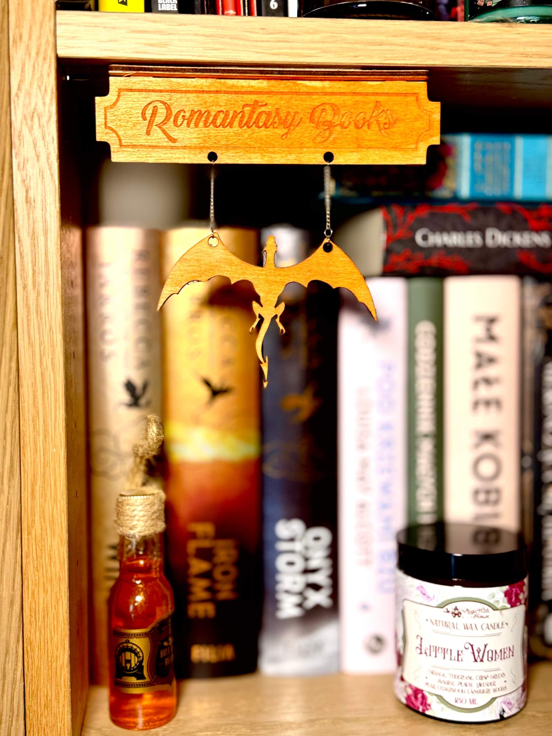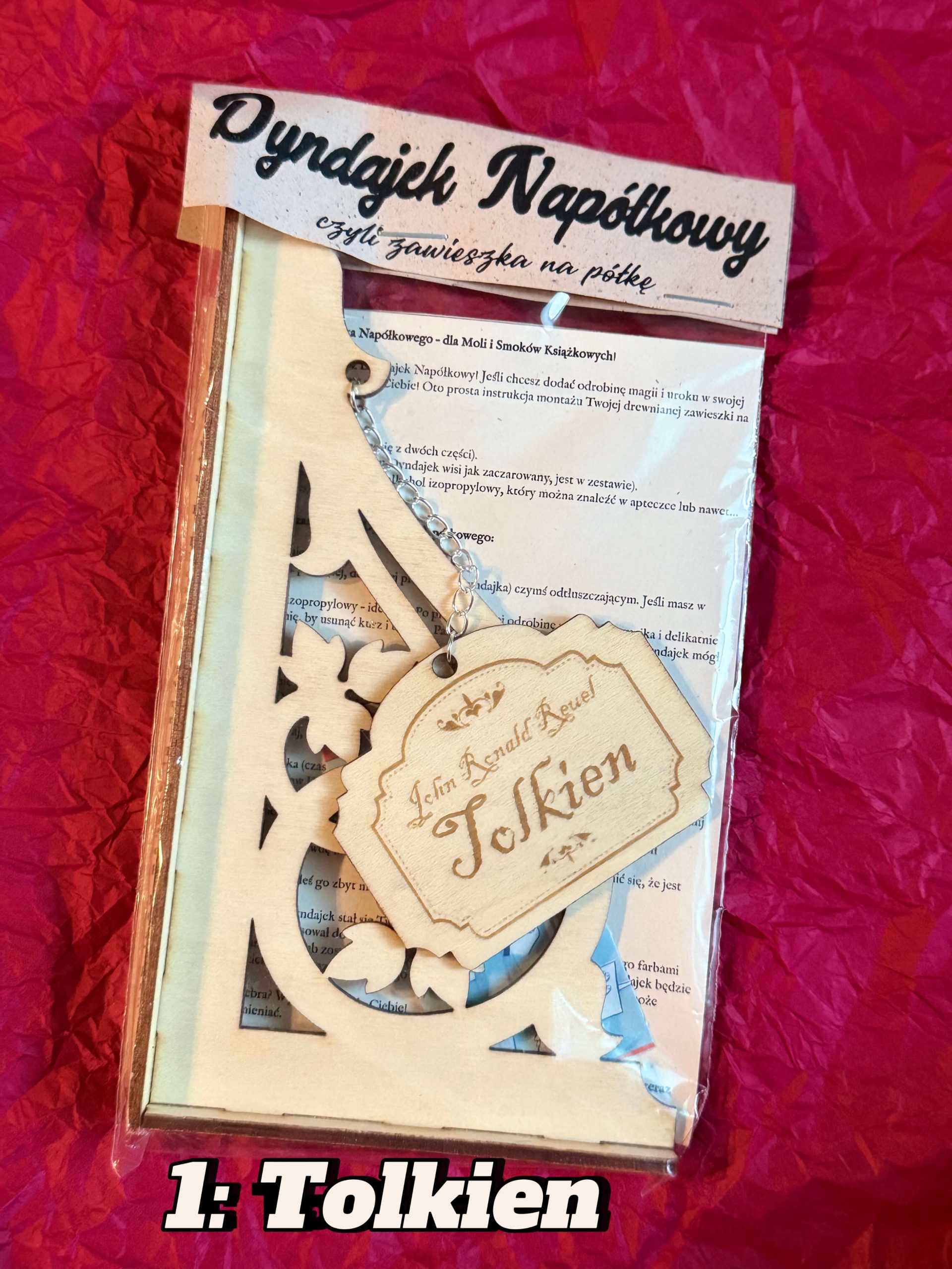I właśnie dlatego powstały dyndajki — limitowane zawieszki, które umieszczasz pod górną częścią półki. Zawisają tam niczym zaklęcia, informując domowników (i duchy), że tu mieszka miłość do literatury.